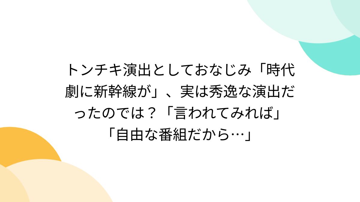 ![トンチキ演出としておなじみ「時代劇に新幹線が」、実は秀逸な演出だったのでは?「言われてみれば」「自由な番組だから…」 - Togetter [トゥギャッター] 妊娠 初期 旅行 新幹線](https://i3.wp.com/s.tgstc.com/ogp3/7739abc3d522356e9a1cbc08ea605035-1200x675.jpeg?ssl=1)